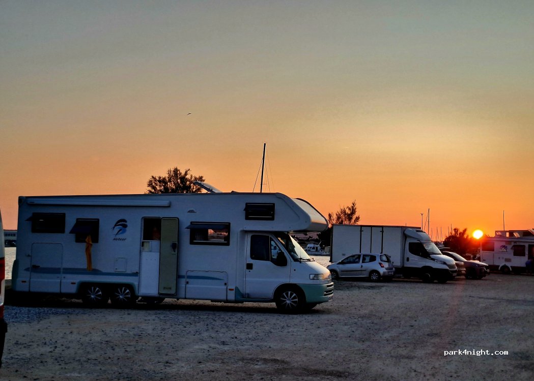 Parcheggio 24/24 con cartello di divieto campeggio ma tolleranza se non più di 4-5 lattine o camper nel parcheggio abbiamo dormito 2 notti senza preoccupazioni arrivo intorno alle 22:30 ideale perchè tanto spazio e i ristoranti non tengono di più clienti che parcheggiano ad una estremità di questo parcheggio, altrimenti bella vista sul porticciolo con possibilità di fare il bagno o pescare proprio accanto alla Marina!