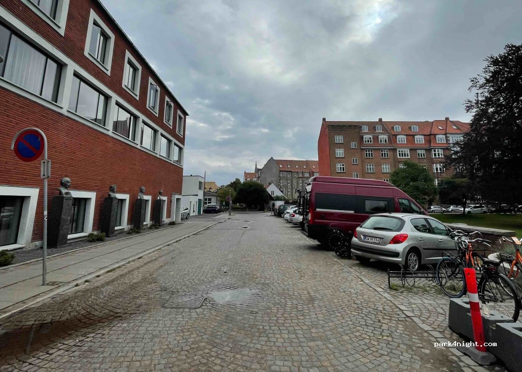 Parking space directly at the park (Mølleparken). Sign says no music should be played after 10pm. Only a 5 minute walk to the bakery, public toilets across the park. 5 minutes walk to the city center. Just off Møllestien, considered the cutest street in Århus. Limited spaces, there is additional paid parking across the street.