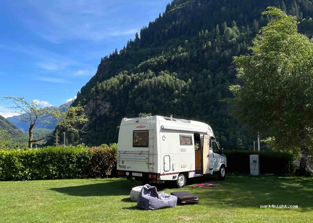 Een zeer mooie kleine camping met alles erop en eraan. Wij stonden tegenover het zwembad met onze grote camper van 9m lang en 3.8m hoog. Lekker gegeten. Bakkerij aanwezig. Wij betaalde 58€ voor 1 nacht met stroom voor 3 man. Prijzig maar zeker waard na een lange 2 uren aanschuiven voor de Gottard tunnel. Gratis wifi die op onze plek perfect verbinding had.