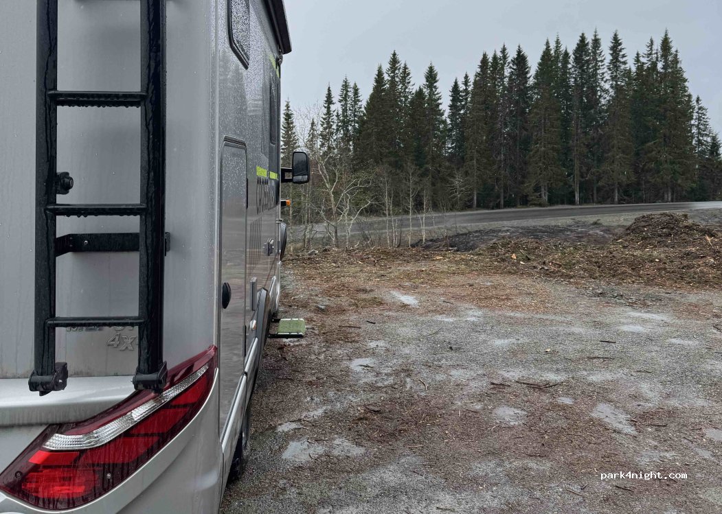 Super großer Parkplatz. Wir standen eine Nacht ganz alleine und hatten den Platz, bei dem man zwischen den Bäumen auf Trondheim schauen kann. Das Highlight für uns, wir konnten hinter den Wolken ein paar schwache Polarlichter sehen und es hat geschneit.