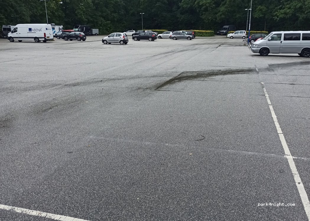 Free very big carpark at a football stadium. No services. City near. Excellent for visiting city during daytime. Bus stop to city 10 seconds away. 10 minutes to city enter with the bus. Amusement park 5 minutes walk. Full during events at the stadium, but otherwise calm and empty.