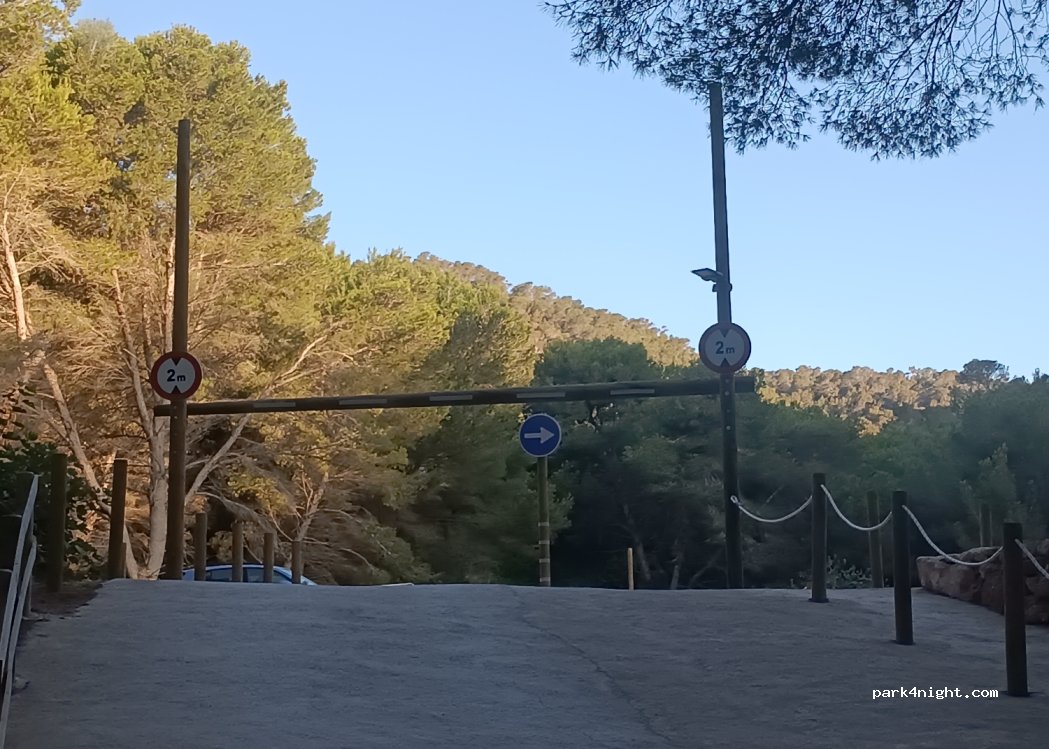 Parcheggio pubblico aperto giorno e notte, la parte di fondo qui indicata non è visibile dalla strada e circondata dalla vegetazione, il terreno è pianeggiante, accesso tramite una piccola carrareccia che sale a sinistra del campo da tennis, molto molto tranquillo, pochi o nessun altro veicolo di notte, vicino alla cala de Sant Vincent che è magnifica, docce sulla spiaggia nel pomeriggio, piccolo supermercato e ottimi ristoranti nelle vicinanze (sulla spiaggia, casa delle barche ...), posto da pulire!
