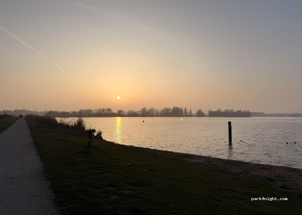 Beautiful spot near the lake. The centre of Leiden is about half an hour by foot from here. Some people live in caravans on this carpark. Most of them don't cause any trouble but at the back lives an agressive guy with a dog who thinks it's his carpark.