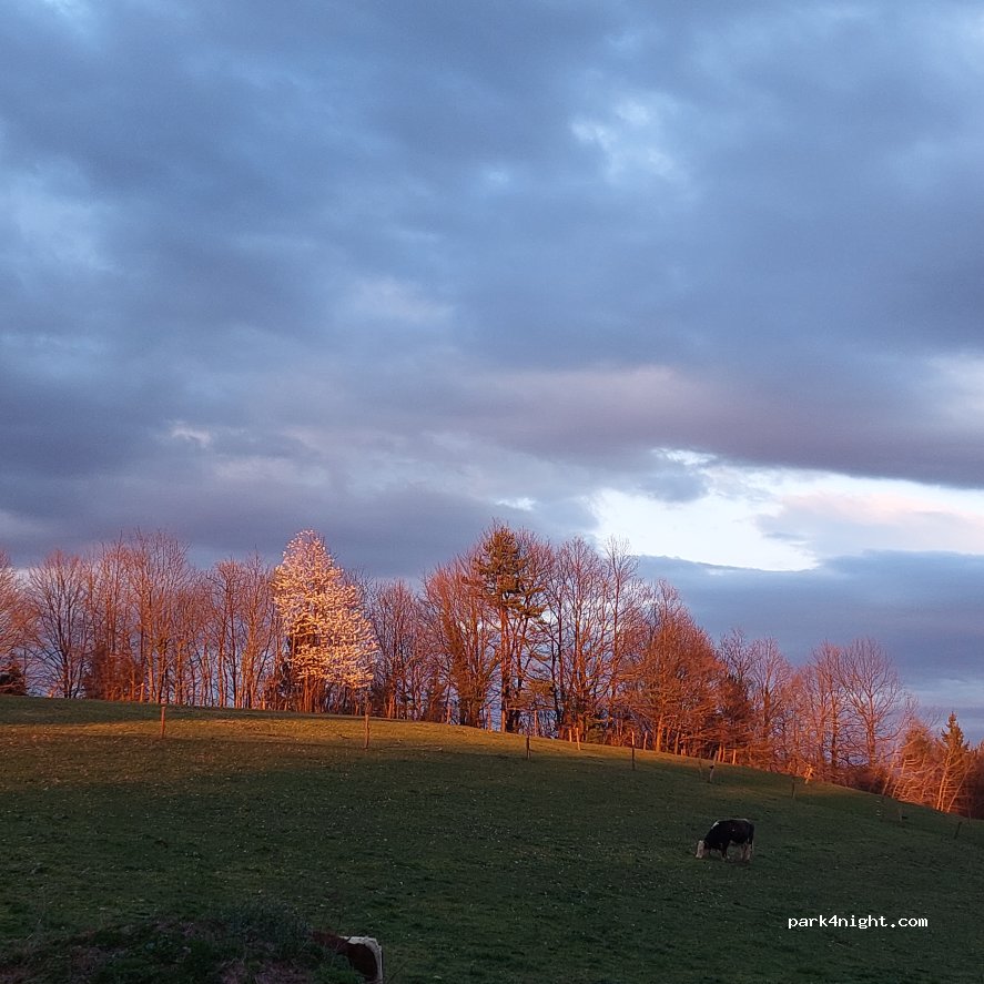 Our sanctuary is located on a hill, the curvy and narrow road is well manageable even with a long trailer or a large mobile home (<9m) and is well paved. The location is beautiful, quiet, with stunning views over the valley. We are happy to welcome you in our parking lot with direct view of the pastures, or a sunny single spot with view to the valley and mountains or a single shadow spot in the forest right next to our barn.