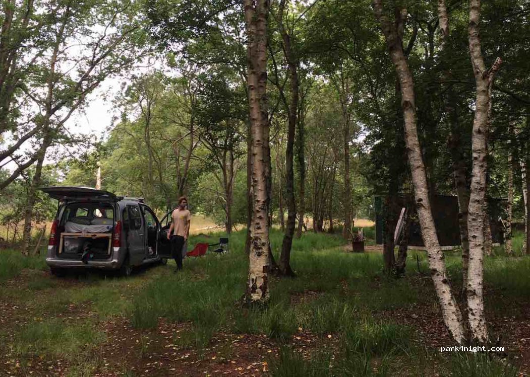 Hartelijke en behulpzame ontvangst! Prima beschutte plek in privé bos, met uitzicht op heidegebied waar wilde damherten lopen. Enorm vogelconcert. Plek voor rust zoekers die het liefste ‘wild camperen’.
