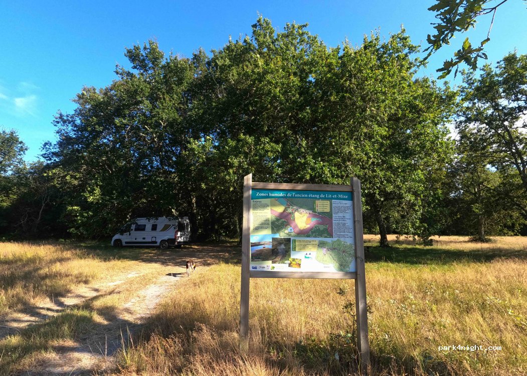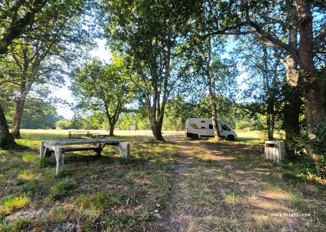 Nuit au calme, sous les chênes. La route est assez loin donc pas gênant. Plusieurs tables de pique nique.