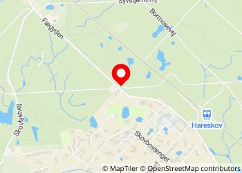 Hier im Wald von "Hareskoven" gibt es einen Schotterparkplatz. Es ist nicht ganz flach, aber Sie befinden sich im Wald und 700 m vom "Bahnhof Hareskov" entfernt.