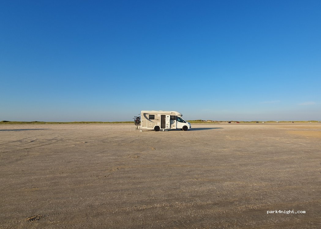 Parkplatz auf dem Strand, man kann auch mit dem Wohnmobil auf den Strand selbst fahren und parken.