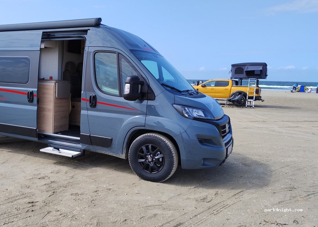 Parking on the beach, you can also drive onto the beach itself with your motorhome and park.