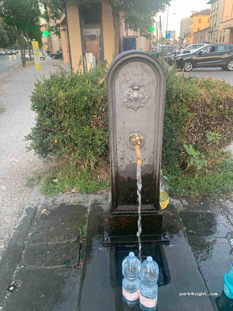 Punto acqua potabile pubblica a Lucca. Molti locali riempiono le loro bottiglie d'acqua qui. Acqua naturale e gasata