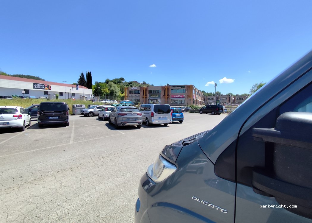 Ottimo parcheggio in zona industriale molto spazioso e molto tranquillo durante la notte. Si trova vicino ad un’ottima forneria e pasticceria (Bonucci).