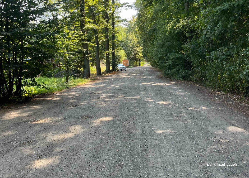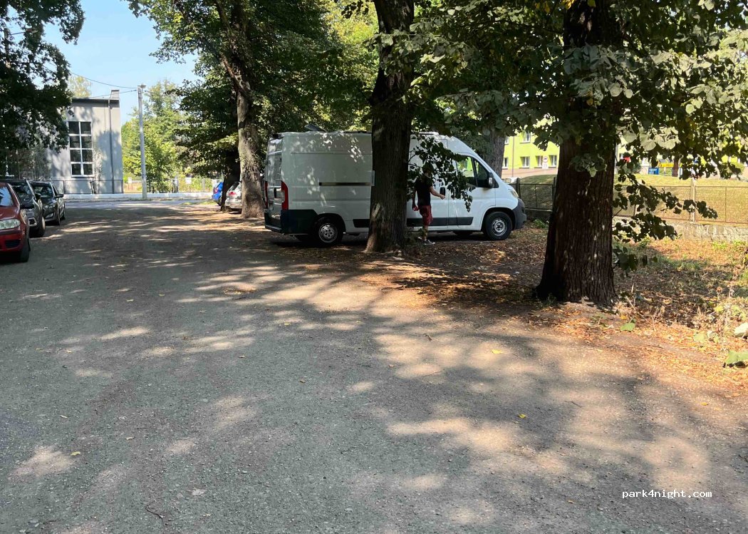 "A great parking spot, quiet and peaceful. We stayed here with our camper van. About 500 meters away, there's a gas station, KFC, a supermarket, PEPCO, TEDi, and a small bakery. The parking lot is next to a beautiful forest park, where there are bike paths and a snack stand. Free restroom facilities are available at KFC and the gas station."