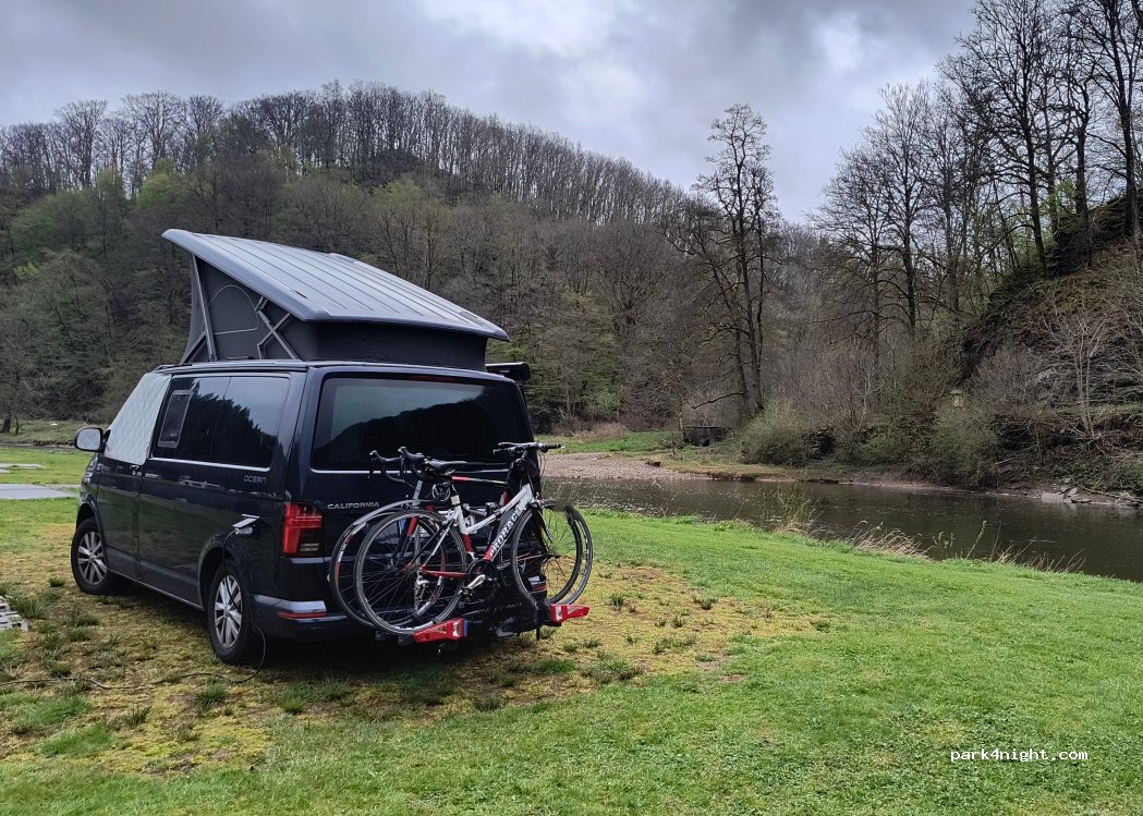 Pour les 10 nouveaux emplacement CC, un sol en gravier pour stationnement en épi. La place très étroite fait juste la largeur d’un CC et donc, dès que l’on sort, c’est dans la boue. Impossible de déplier le store ou sortir les chaises et la table. Vue sur les CC voisins ou sur les caravanes au bord de l’eau. Pas d’emplacement au bord de la semois. 90 € pour 3 nuits avec électricité. Douche 2 €.