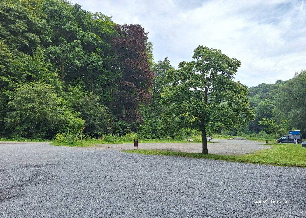 Großer kostenloser Parkplatz inmitten der Natur in einem Tal, 7 Minuten von der Autobahnausfahrt entfernt. Kein Lärm, völlige Stille außerhalb von Vögeln und Enten, Teich in der Nähe. Restaurant 400 Meter zu Fuß. Ideal zum Wandern und Mountainbiken. Halten Sie Ihren Hund an der Leine. Respektieren Sie die Natur, werfen Sie Ihr Abwasser nicht weg. Mülleimer vorhanden.