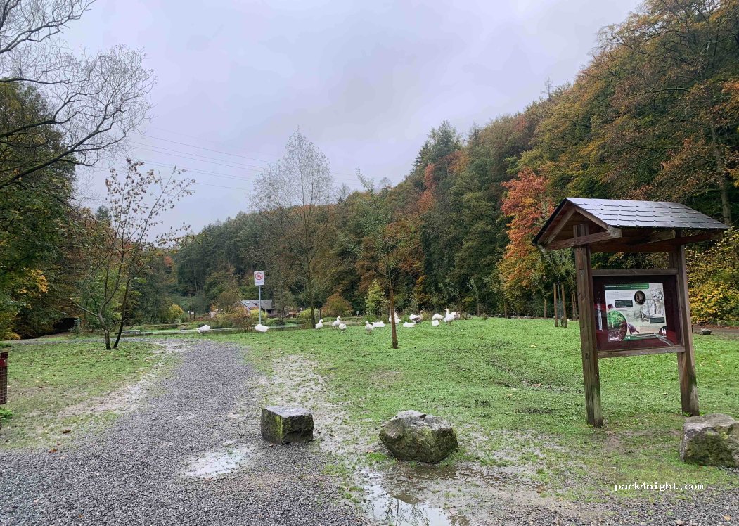 Grote gratis parkeerplaats midden in de natuur in een vallei op 7 minuten van de afrit van de snelweg. Geen lawaai, volledige stilte buiten vogels en eenden, vijver in de buurt. Restaurant 400 meter te voet. Ideaal om te wandelen en mountainbiken. Houd uw hond aan de lijn. Respecteer de natuur, gooi je afvalwater niet weg. Vuilnisbakken aanwezig.