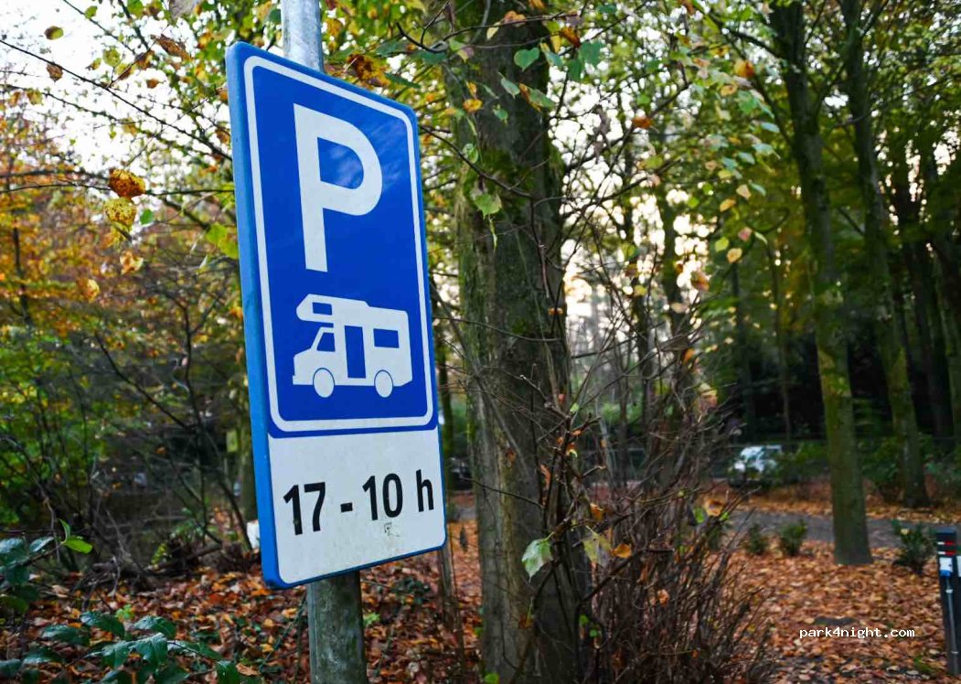 Place de parking du camping de Zeven Linden (pas le camping lui-même). Emplacement camping-car avec électricité, disponible de 17h à 10h le lendemain matin.