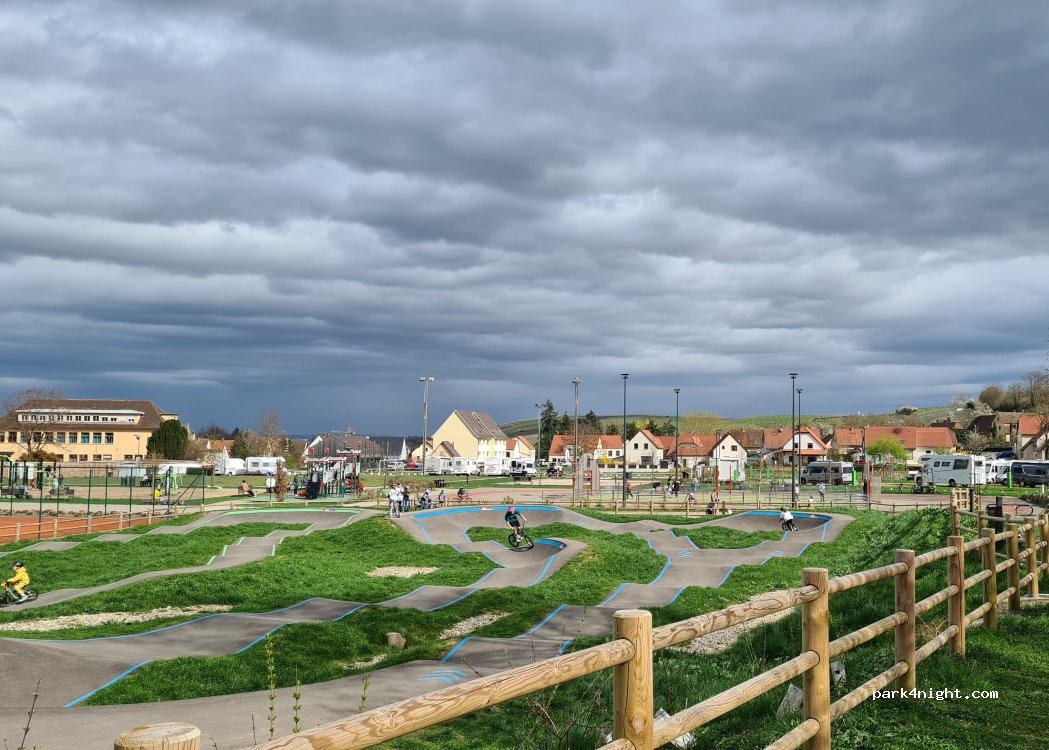 Sehr schöner gut gepflegter CampingCar Platz. Die Spiel- und Sportanlagen werden von Kindern und Heranwachsenden so genutzt wie es sein soll. Im Ort findet man fußläufig alles was man braucht. Wir haben im "au Boeuf Rouge" sehr gut elsäschich gegessen und getrunken.