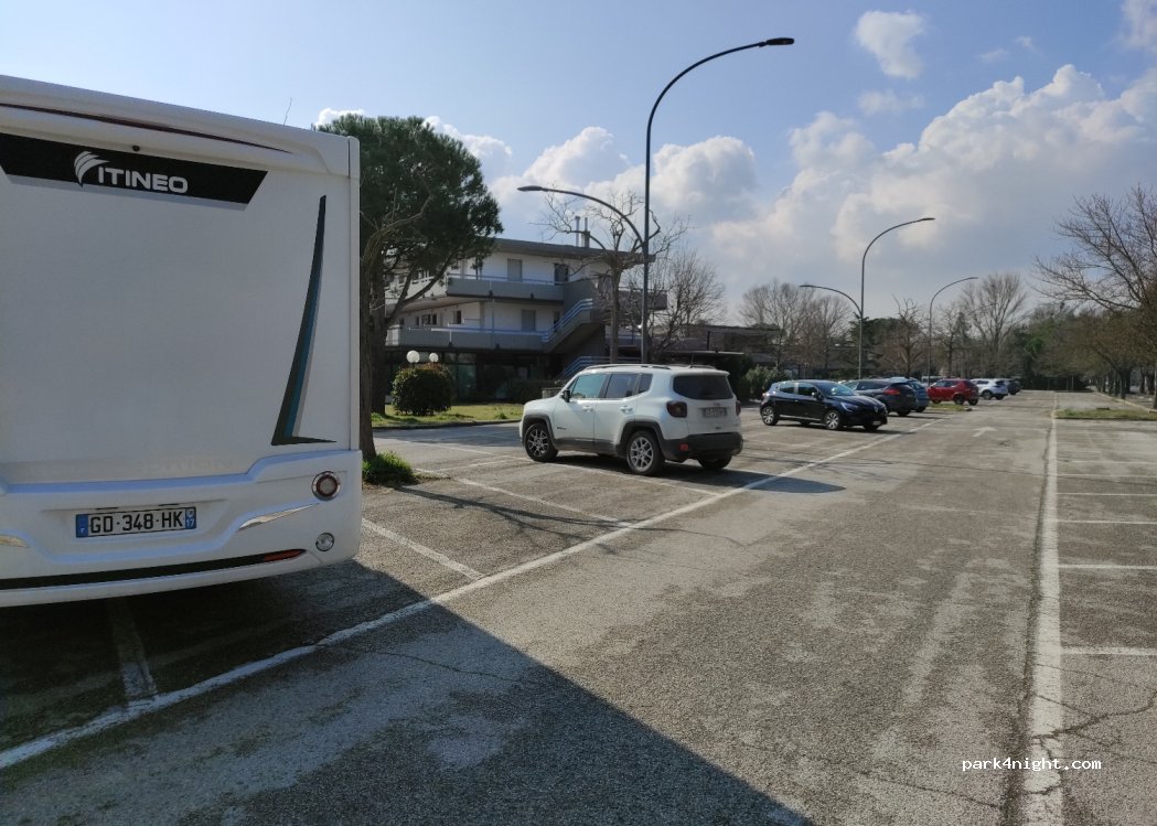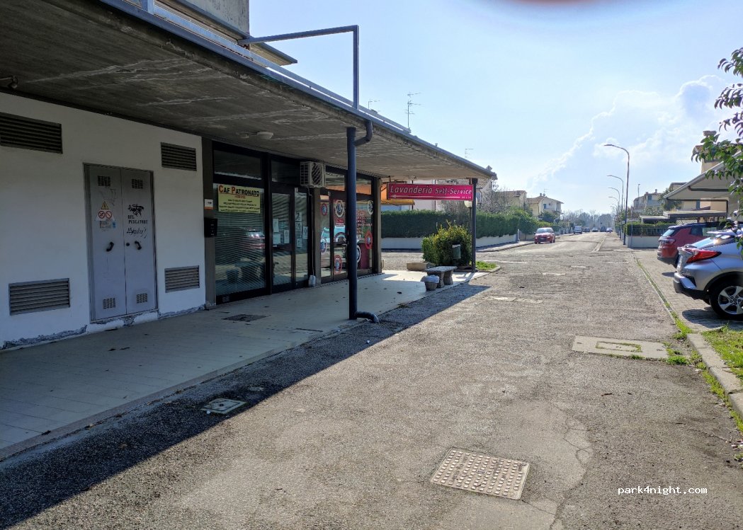 Self service launderettte. Large car park adjacent and a Conad supermarket 200m away, so you can stock up with provisions whilst you wait for your laundry.