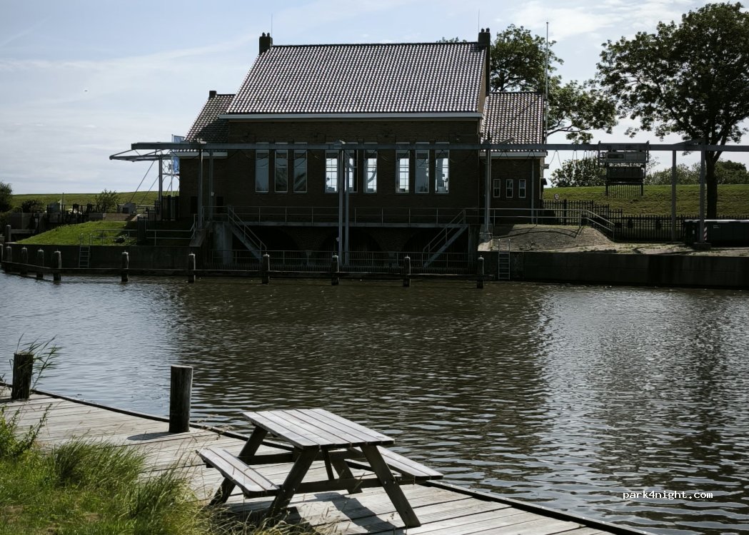 Gegenüber der Pumpstation Dongeradiel und einer jahrhundertealten Schleuse am Lauwersmeer. Super Ort für Vogelbeobachter, Wanderer, Radfahrer und Ruhesuchende.