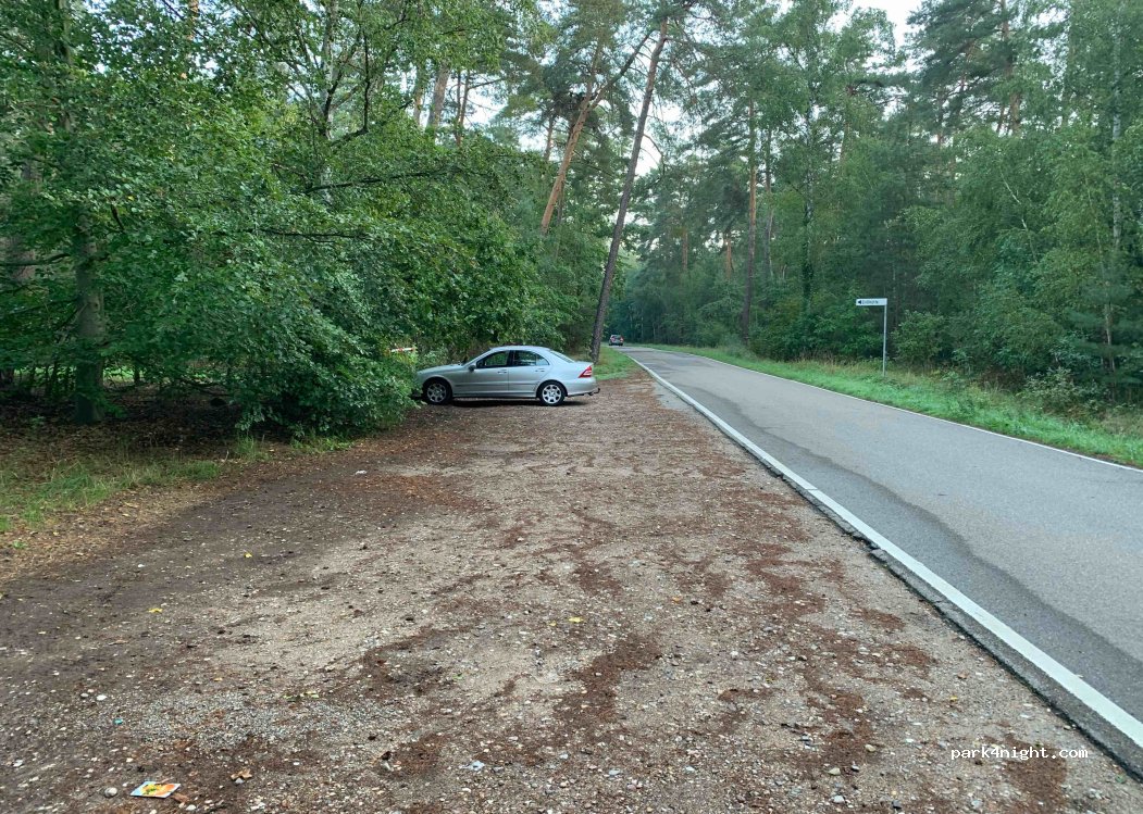 Makkelijk parkeren in het bos. Eigenlijk voor de grillhut.