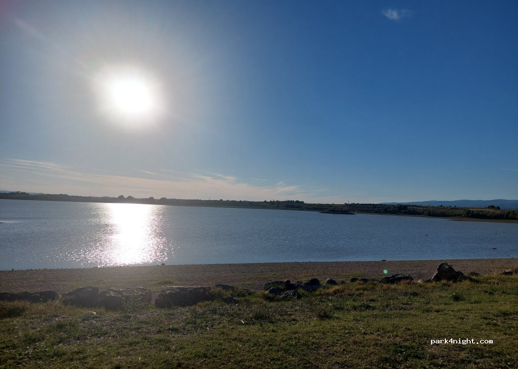 Beaucoup de place et d'arbres, par contre bruyant le soir, nous sommes descendus au parking en contrebas, il est plein soleil mais vraiment les pieds dans l'eau c'est agréable, passage de la gendarmerie 2 fois dans la nuit pour voir si tout est ok