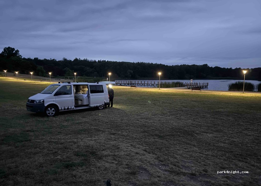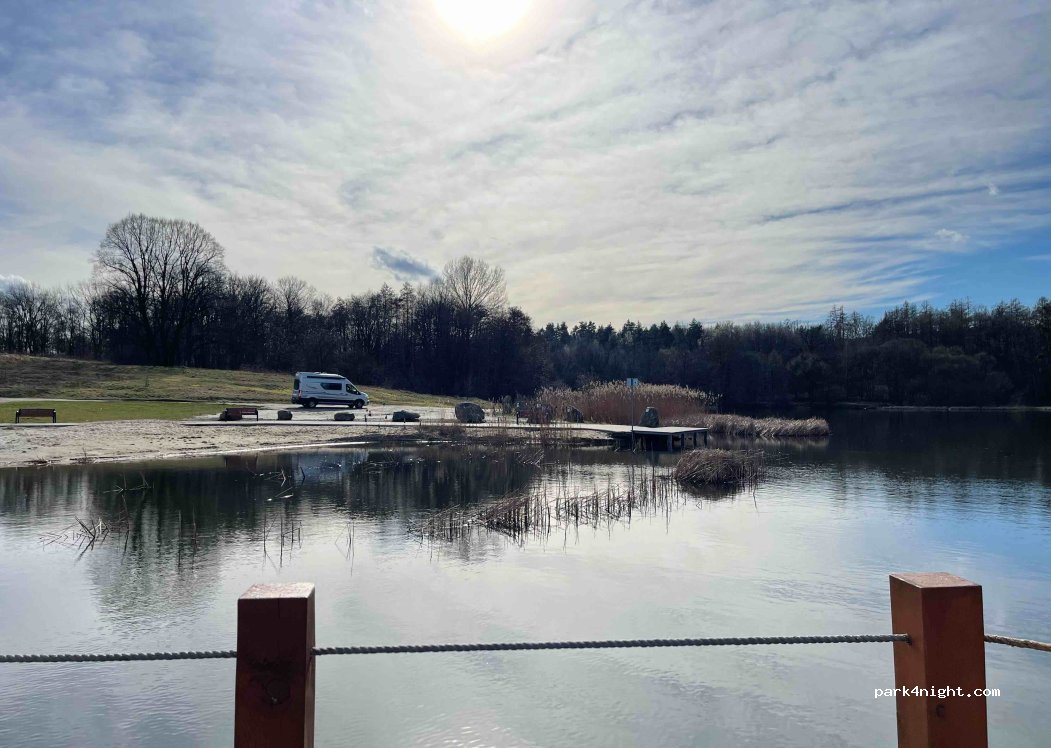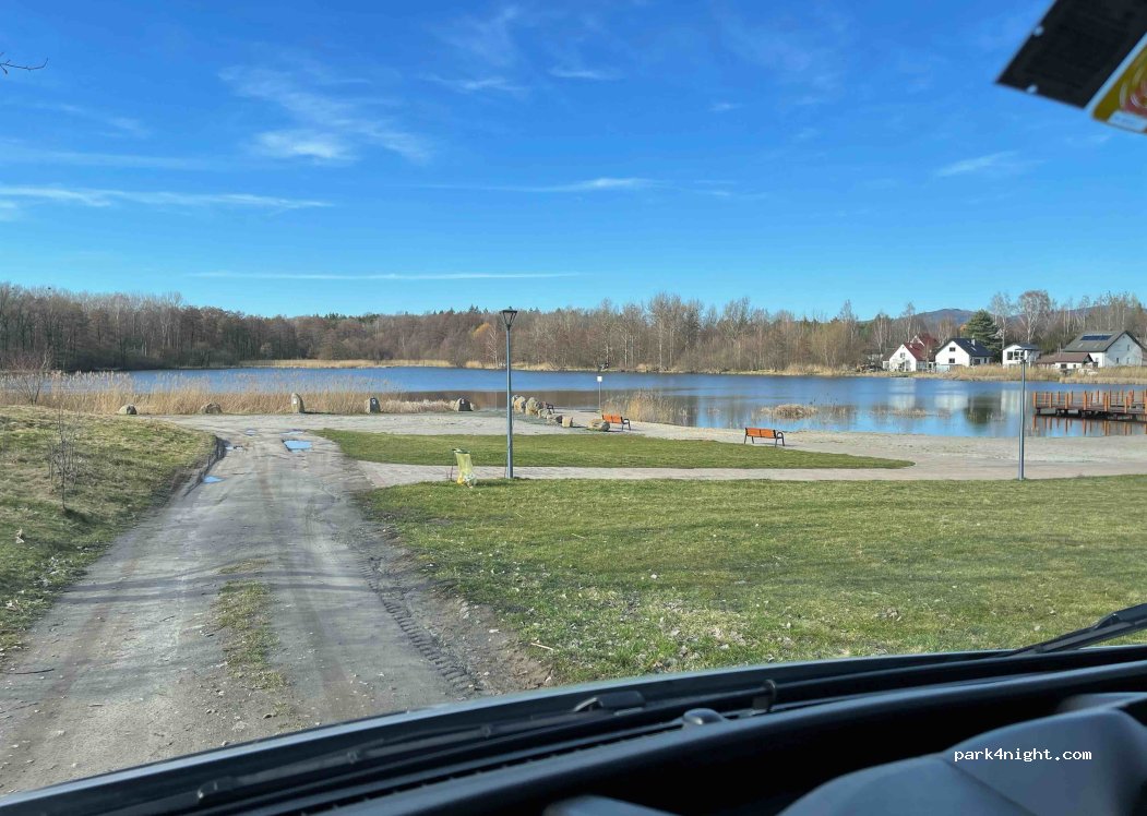 bardzo duży parking sporo miejsc na kampery i przyczepy miejsca na ognisko w nocy cicho trzeba korzystać z głównego parkingu miejscówki wokół jeziora są zarezerwowane dla koła wędkarskiego