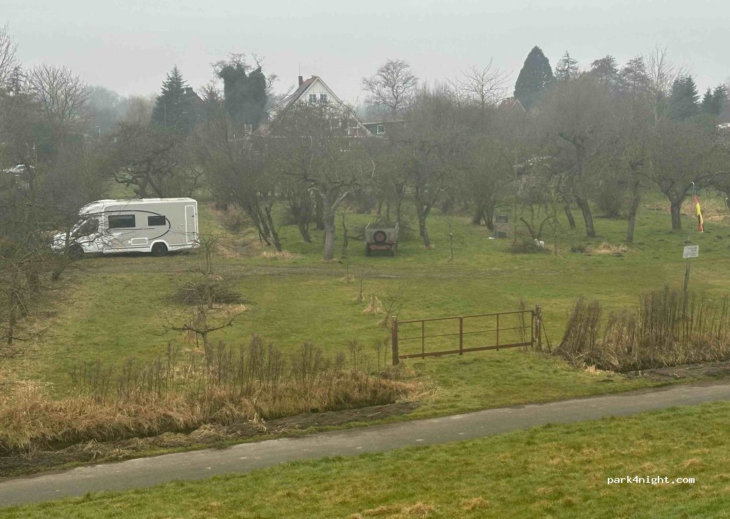 Super Platz unter Apfelbäumen,direkt hinter dem Deich.Wir waren allein dort und haben uns sehr wohl gefühlt.Gern wieder.