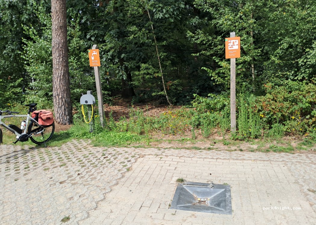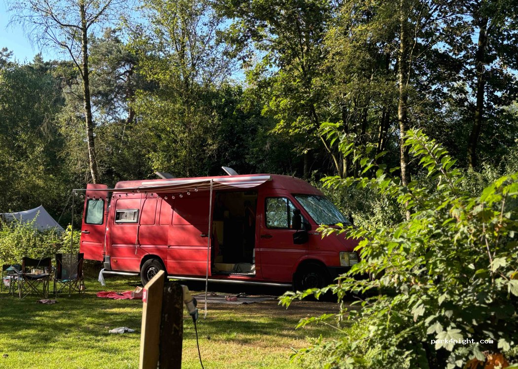 Alleen voor campers tot 7meter! Er zijn twee kampvuur plekken waarvan er één half overdekt is. De blokhut heeft een boek-ruil-kast. groot speelbos met waterpomp. plaatsen met privé-sanitair, het gedeelde sanitair is verwarmd, wasmachine, droger, vriezer familiedouche, loosput voor campers. geen receptie of beheerder die je kunt spreken. Inchecken bij de zuil. Je kunt ter plekke alleen pinnen.