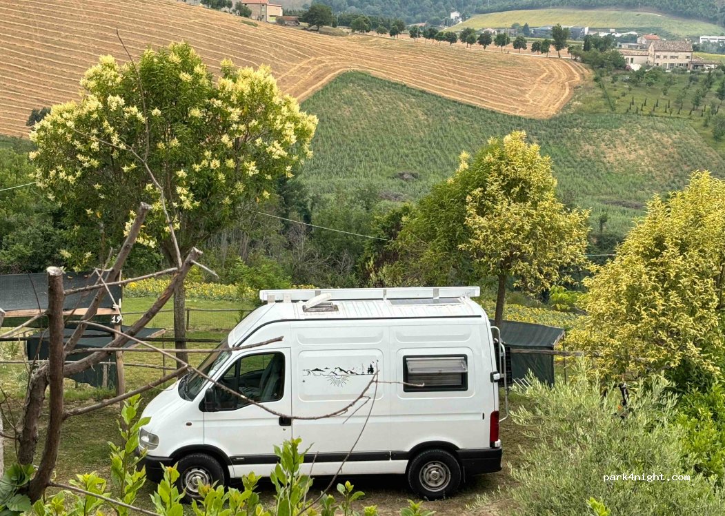 Traumhafter Ort 2km von Montelparo entfernt. Tolle, große Stellplätze - alle mit schönem Blick über die Landschaft bis zu den Bergen. Jeder Platz mit Pergola. Schöner Pool, WI-FI-Zone, Spielplatz für die Kleinen, Tischtennis u. v. m. Heiße Duschen ohne Limit. Machen offiziell ab Juni auf. Isaak ist ein richtig netter Gastgeber!