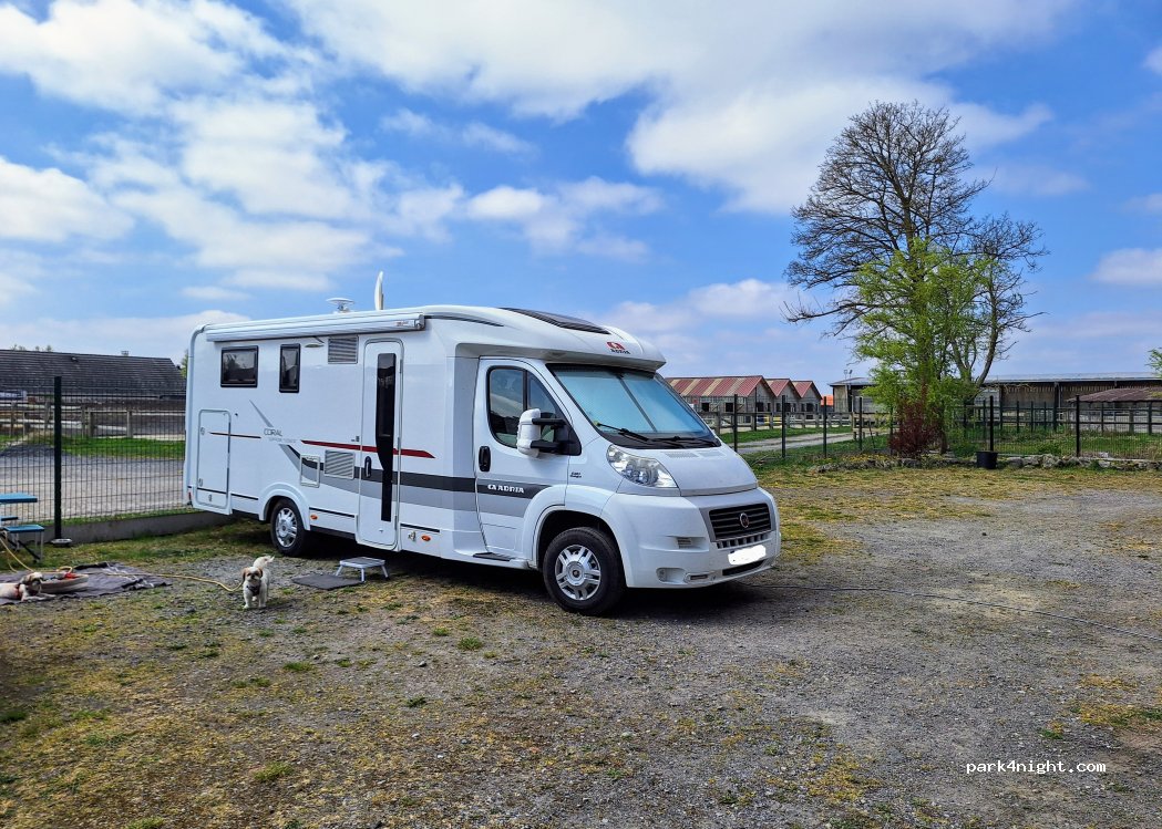 Best eerst telefoneren om je plek te reserveren en dan weet je beter waar je moet zijn. Het is niet op de manege zelf, maar aan het grote hek op nr 1. Vlak op de hoek / bocht. We werden vriendelijk onthaald en getrakteerd op een specialiteit van de streek ... picon biere. Het is een rustige slaapplek met zicht op de manege van de buren. De eigenaars reizen eveneens met Park 4 night.