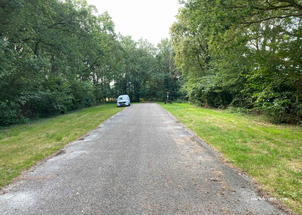 Rustige parkeerplaats. Doodlopend. Wandelroutes vanaf deze parkeerplaats.
