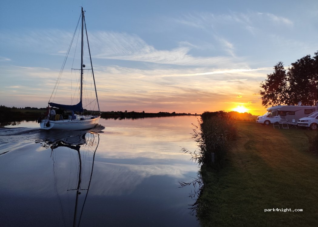 Schöne Stellplätze direkt am Kanal. Ideale Lage um Sneek, die vielen Seen und das Ijsselmeer mit dem Rad zu erkunden. Sanitäreinrichtung und Entsorgungsservice topp. Inhaber sind nicht immer da. Bei Ankunft Stellplatz auswählen, Stromkabel einstecken, Zählerstand auf Anmeldezettel eintragen (liegt im Haus für jeden Platz bereit) und in Briefkasten werfen. Anweisungen sind nur auf Holländisch.