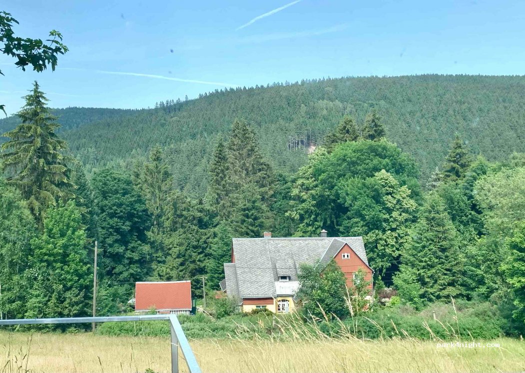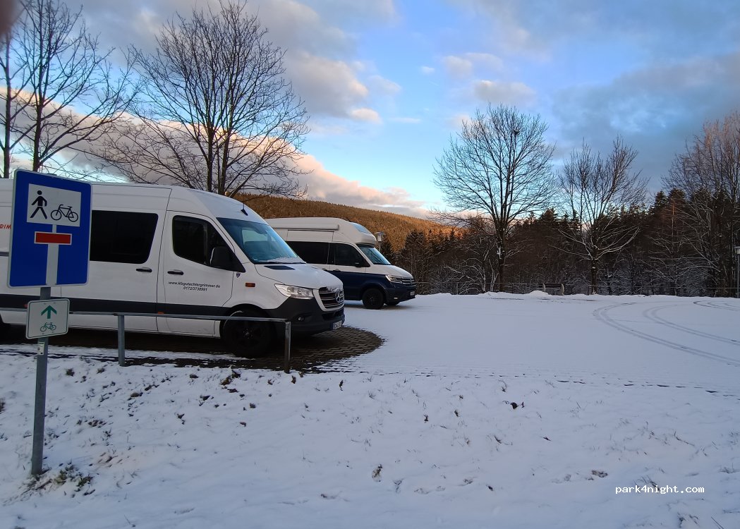 Public car park at a bus stop in Bärenfels. With a beautiful view. No night parking ban recognizable. Prohibited only for trucks.