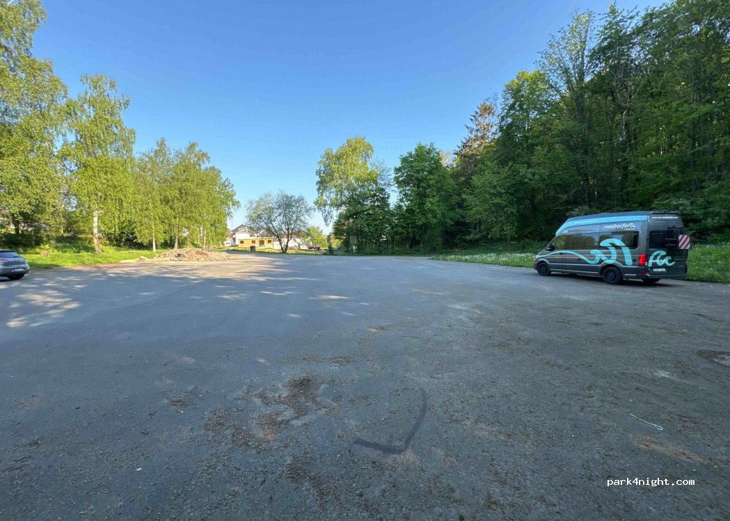 Wanderparkplatz am Waldschwimmbad. Sehr groß, eben, geteert, ruhig, teilweise schattig.