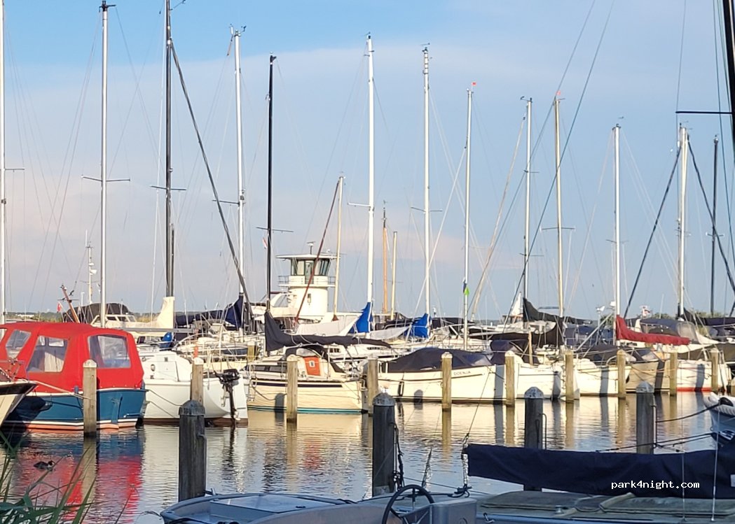 Als wir kamen, waren zwar alle Plätze voll und das Segelsaison-Abschlussfest in vollem Gang. Trotzdem bekamen wir schnell und unkompliziert einen Platz vor dem Gelände zugewiesen und durften die sehr sauberen Sanitäranlagen und die Entsorgung mitbenutzen (10,50 € pro Nacht). Vorbestellung ist generell nicht möglich, aber es findet sich sicherlich immer ein Weg.