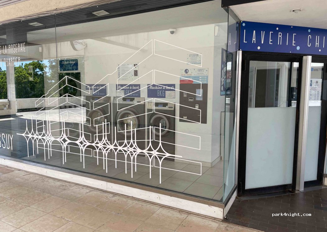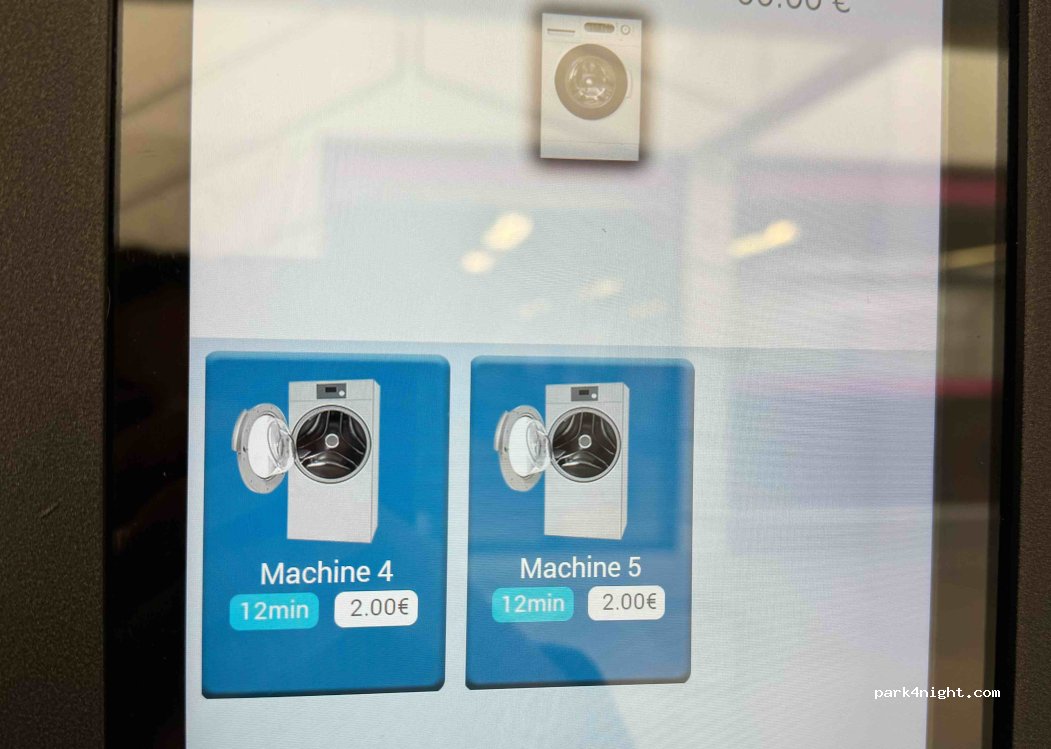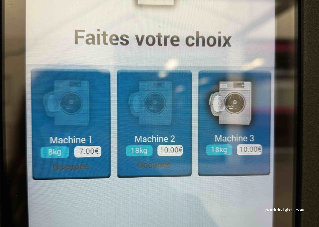 Laverie automatique avec machine gros volume. Elle est géniale pas besoin de lessive et en enregistrant son numéro de téléphone la machine envoie un SMS lorsqu’elle en fin de cycle de lavage. Avec ce lien on voit si les machines sont occupées ou disponibles.