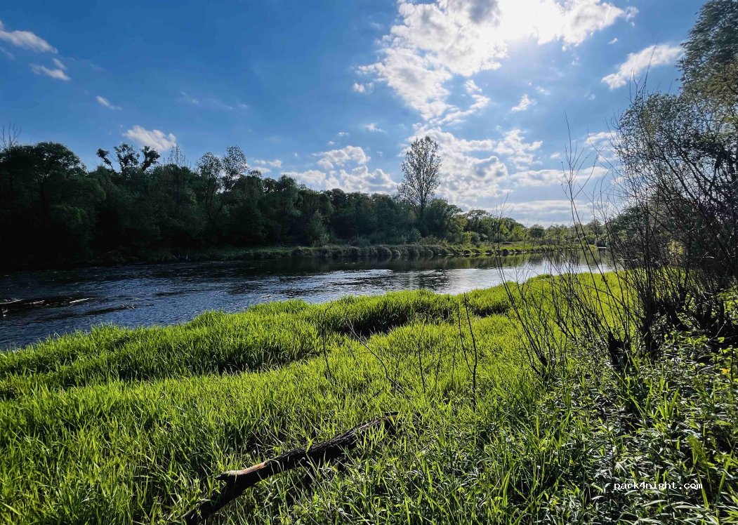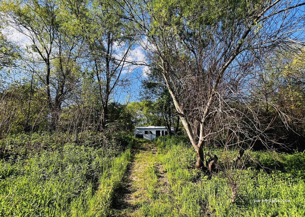 very beautiful spot on the river, recommending it! fishers and kajakers came by, everybody was very friendly, we didnt seem to bother anyone. careful about the road though: you need some ground clearance and theres low hanging branches. got there with my 4x4 van with a height of 2.3 meters.