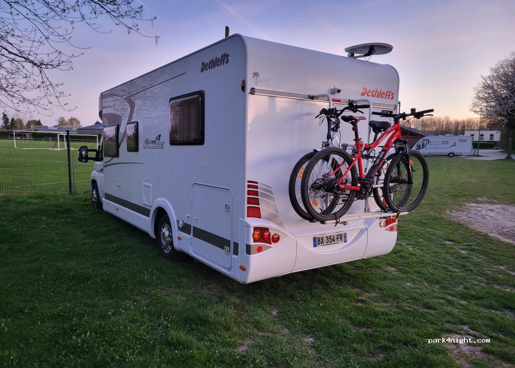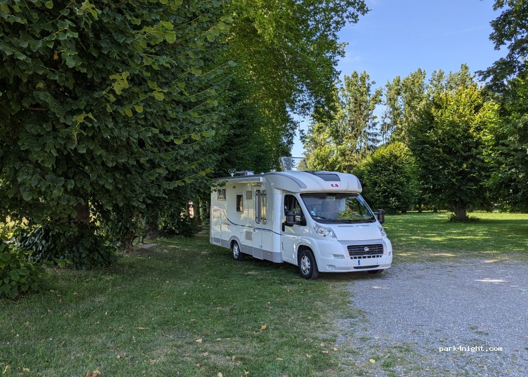 parking près de l'église très calme . aire de vidange et remplissage au top .2€ on a le temps de tout remplir.merci à la municipalité
