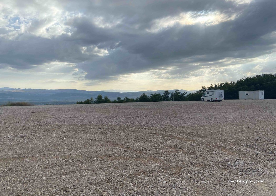 Just off the main road there is currently (sept 23) large stoney plateau. We stayed overnight very quiet despite closeness of road.