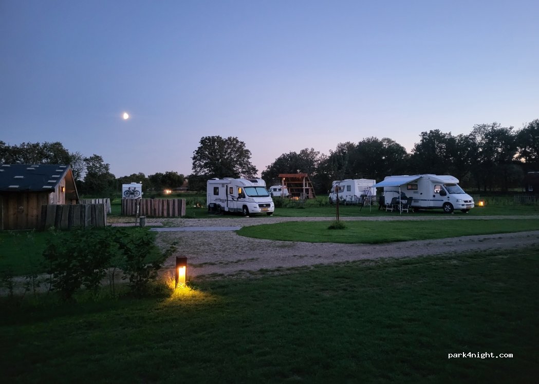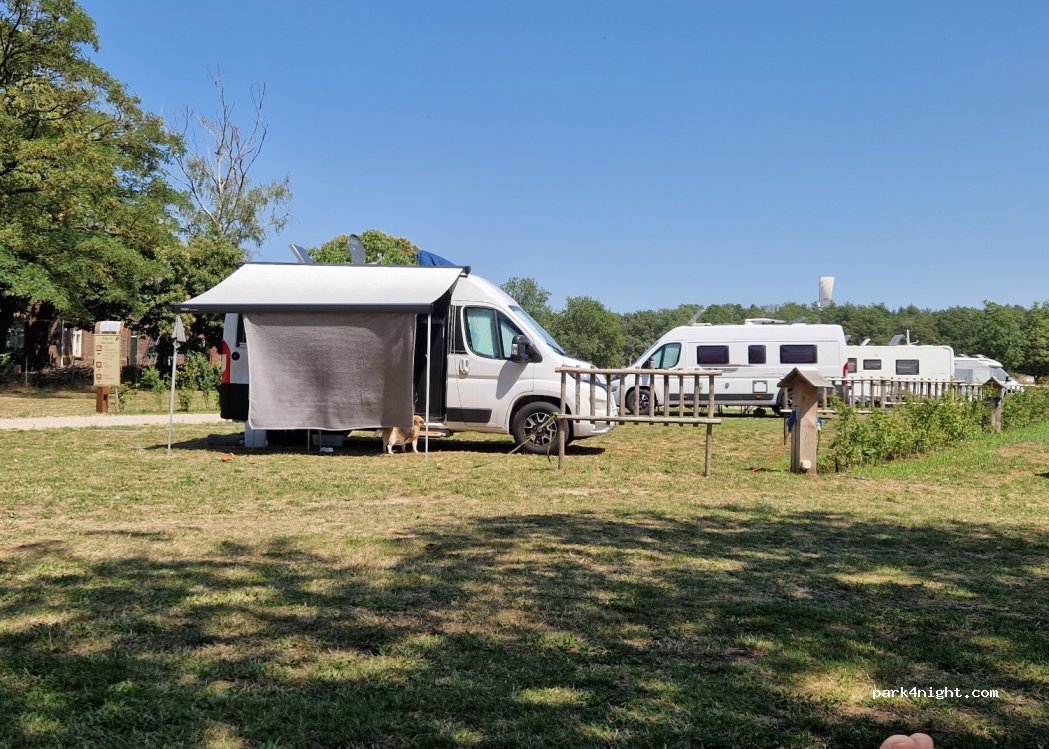 Plaats geschikt voor camper met aanhangwagen en campers tot 12 meter.