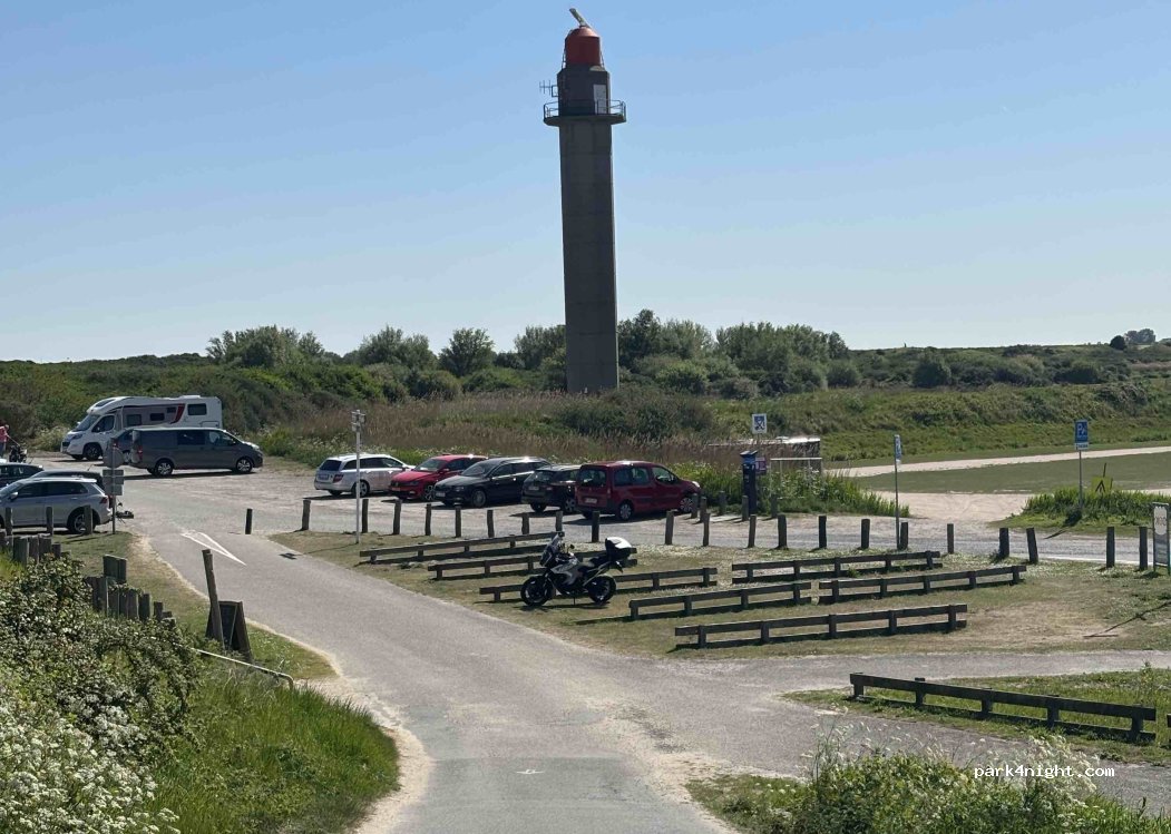 Parking de jour. 2 € par heure. nous sommes restés 2 heures. Parfait pour faire une balade sur la plage et dégourdir les pattes de notre chien. Accès direct à la plage. Nous avons longé la plage jusqu'au restaurant Dok 14 où nous nous sommes régalés de moules. Vue parfaite !