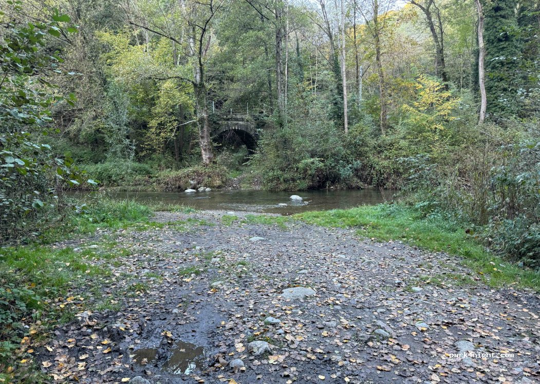 Mooie plek aan snelstromend riviertje met helder water. Het geruis van het riviertje overstemd grotendeels het verkeer van de N260. Anders dan het op het eerste gezicht lijkt is het wel gewoon een pad dat door een boer met zijn tractor wordt gebruikt. Je staat dus bij een rivierdoorsyeek die je vrij moet houden. Daarom geen plek voor grotere voertuigen. Een of maximaal 2 busjes kan wel als je aan de randen parkeert.