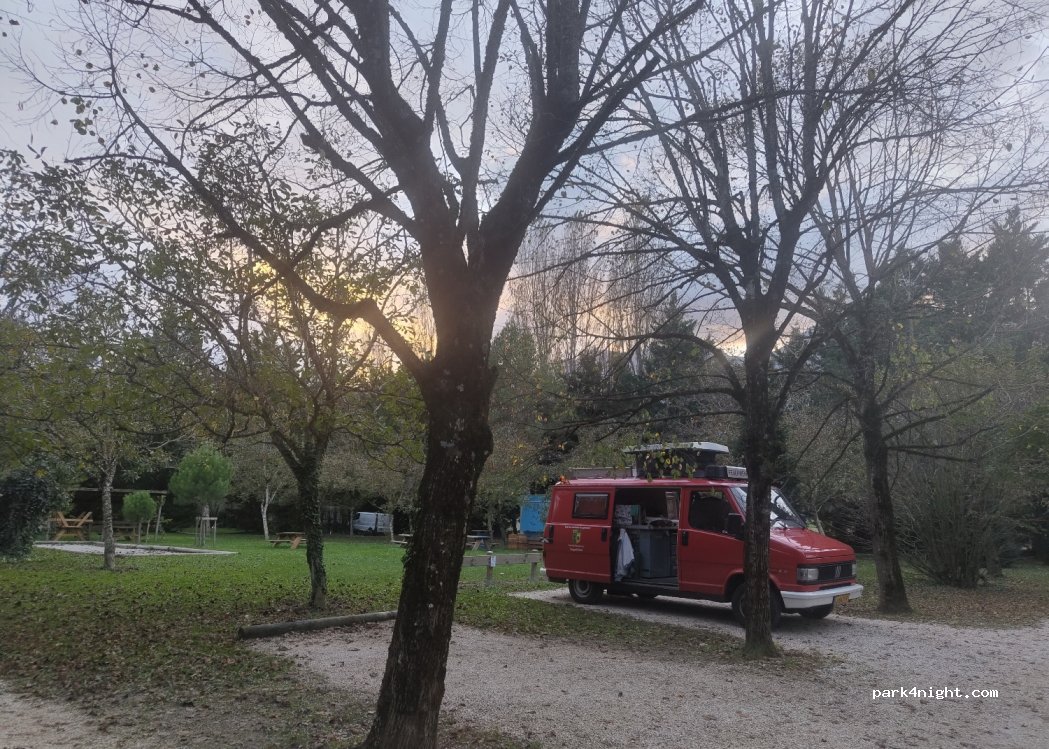 Hemos ido con dos perros y una furgoneta, y nos ha costado una noche menos de 20€. Muy buen recibimiento y trato por parte de los dueños, muy agradables. Puedes apuntarte para que por la mañana te traigan el pan y croissants recién hechos. Entorno muy tranquilo, acogedor, familiar y rodeado de naturaleza. Grande y original piscina. Baños y duchas impecables. Puedes salir a pasear por los alrededores. Muy recomendable!