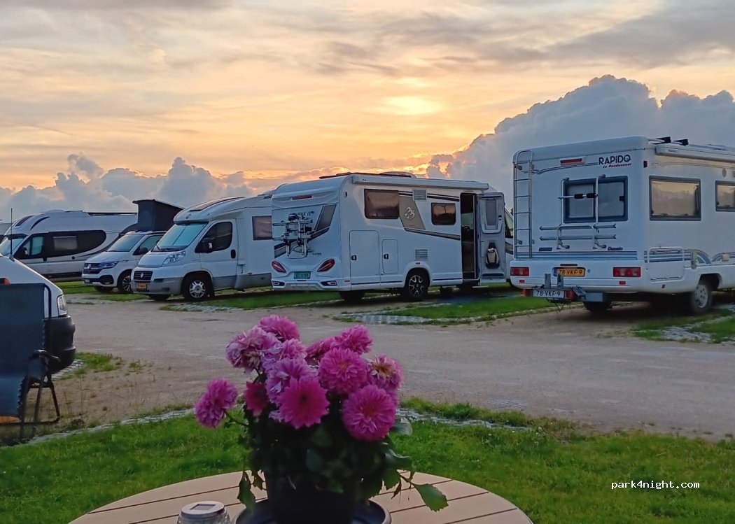 Nice and frendly owners, willing to help. Among the tulip felds, you can bearly hear the road, toilets are clean and well maintained. good wifi reception. You can empty chem WC, grey water and refil drinking water. electricity is chaged by the usage. Pitches are sand and grass. I reccomend it.