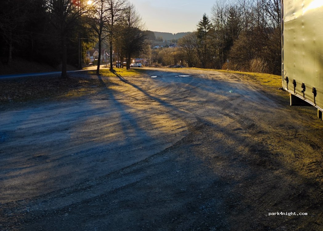 Parking lot on the outskirts of Benshausen/Zella-Mehlis, about 500 m from the outdoor pool. Heavy traffic/rush hour in the morning