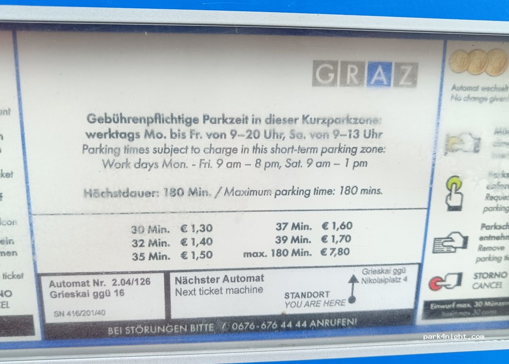 Haben hier auch für den Besuch von Graz gestanden. Hat alles gepasst, man sollte nur ausreichend Münzen dabei haben. Karte hat bei uns nicht funktioniert.