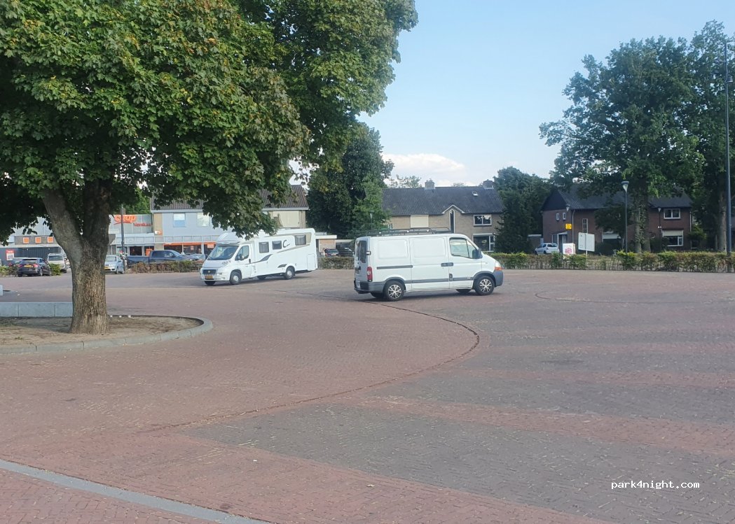 Grote parkeerplaats in een dorp , voor een kerk. supermarkt ernaast , grasveld met drinkwater ernaast. heel rustig , op zondagochtend kan het drukker zijn ivm de kerk. voor mij in deze plaats een mooie plek.