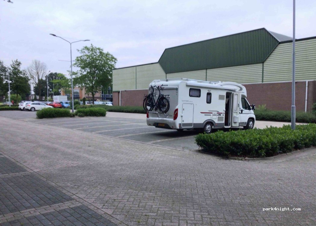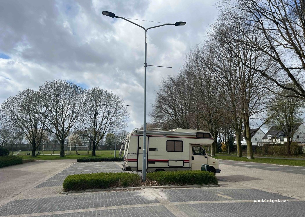 E Een plaats voor een tussenstop om te slapen, parkeerplaats tussen een woonwijk en sport-accommodaties, voelde veilig en rustig in de nacht.