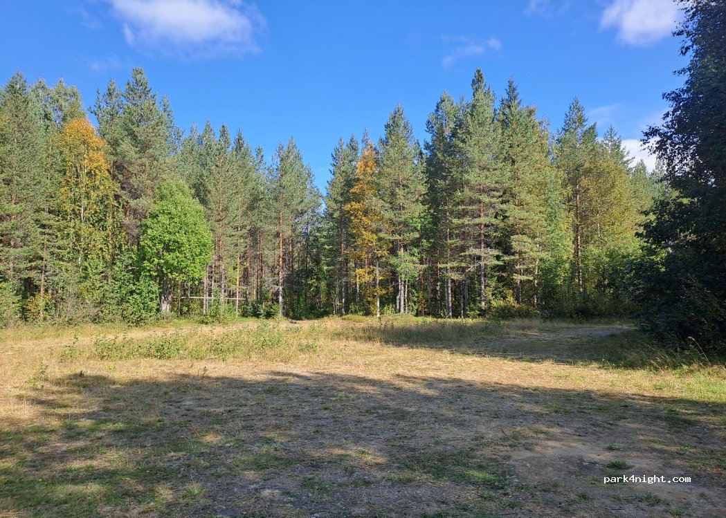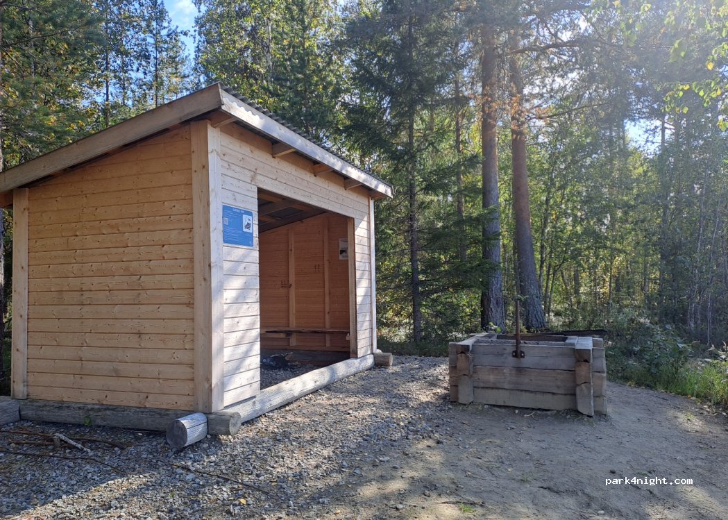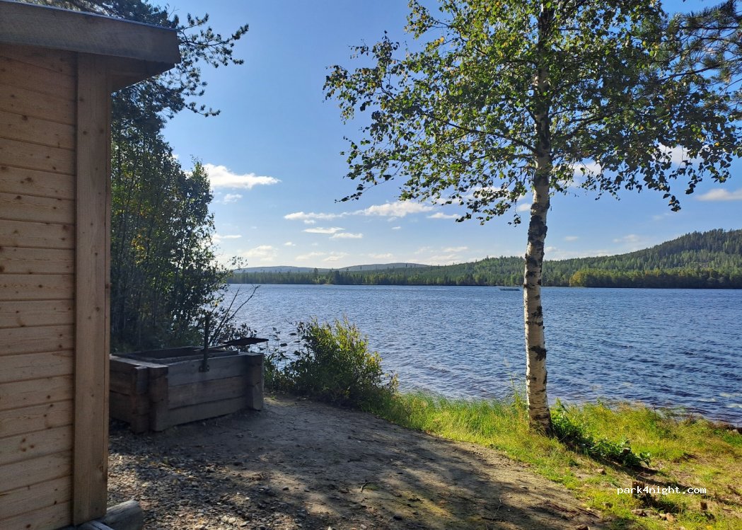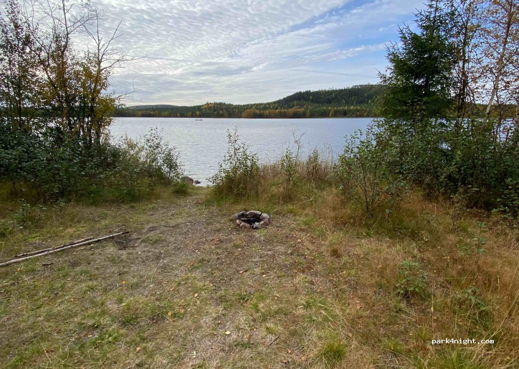 Groß genug um LKWs zu wenden ja, kamen aber keine. Geräumiger Wald-/ & Angelplatz inkl. Schutzhütte, Holz Grill und mini Sandstrand. Bitte sauber hinterlassen.