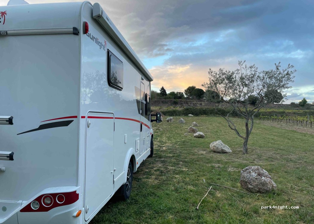 Absolute Ruhe umgeben von Natur: Weinreben, Kiefernbäume, Wiese, kleiner Friedhof. Auch für Hunde ideal. Verbrachte auf der Durchreise eine ruhige Nacht.